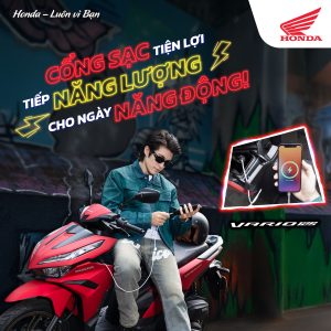 Làm việc, check-in, giải trí, hay chill cùng bạn bè? Cổng sạc USB nhỏ gọn được tích hợp ngay trên hộc đồ của Vario 125 giúp bạn nạp đầy năng lượng mọi lúc mọi nơi, luôn giữ kết nối và luôn sẵn sàng cho một ngày năng động.